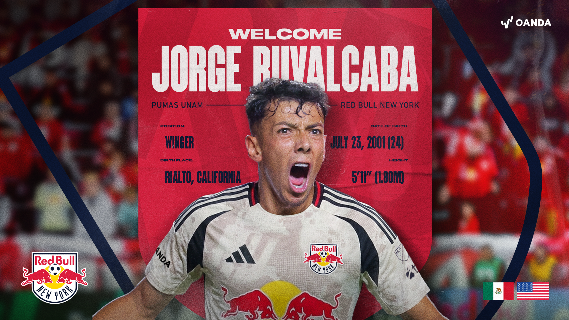 HARRISON, N.J. (2 de febrero de 2026) – Red Bull New York ha completado el traspaso del internacional mexicano Jorge Ruvalcaba procedente de los Pumas de la UNAM por una cantidad no revelada, anunció hoy el club. Ruvalcaba firma un contrato de cuatro años y medio con la MLS hasta la temporada 2029/30 con opción para la 2030/31. Ocupará el tercer puesto de Jugador Franquicia de Nueva York en 2026, pero sigue siendo elegible para la TAM (Fecha de Transferencia) para temporadas futuras.